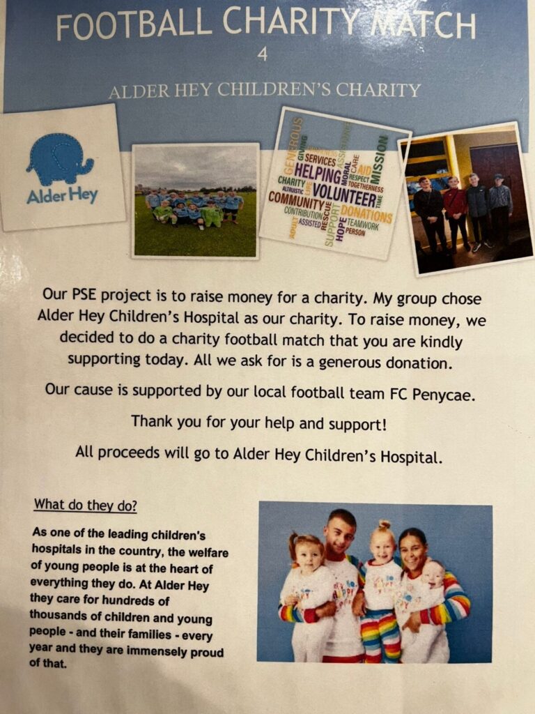 One group of students decided to join together with their football team, and host a charity Match, in order to fundraise for Alder Hey Childrens Hospital.