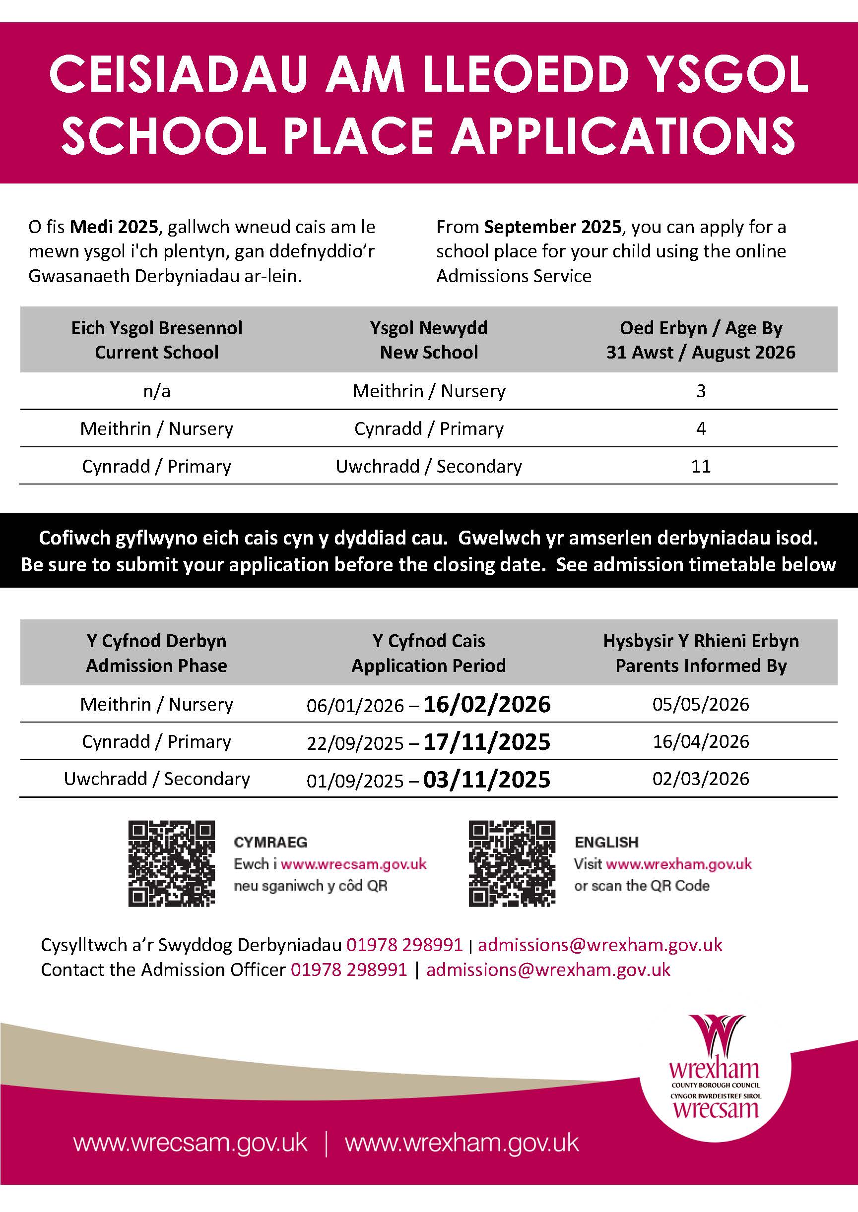 Deadline Day Reminder Friday, 17th October 2025 The final day for applications to join Ysgol Rhiwabon is Monday November 3rd. Please scan the QR code or log onto the application process at https://www.wrexham.gov.uk/service/school-admissions/secondary-admissions