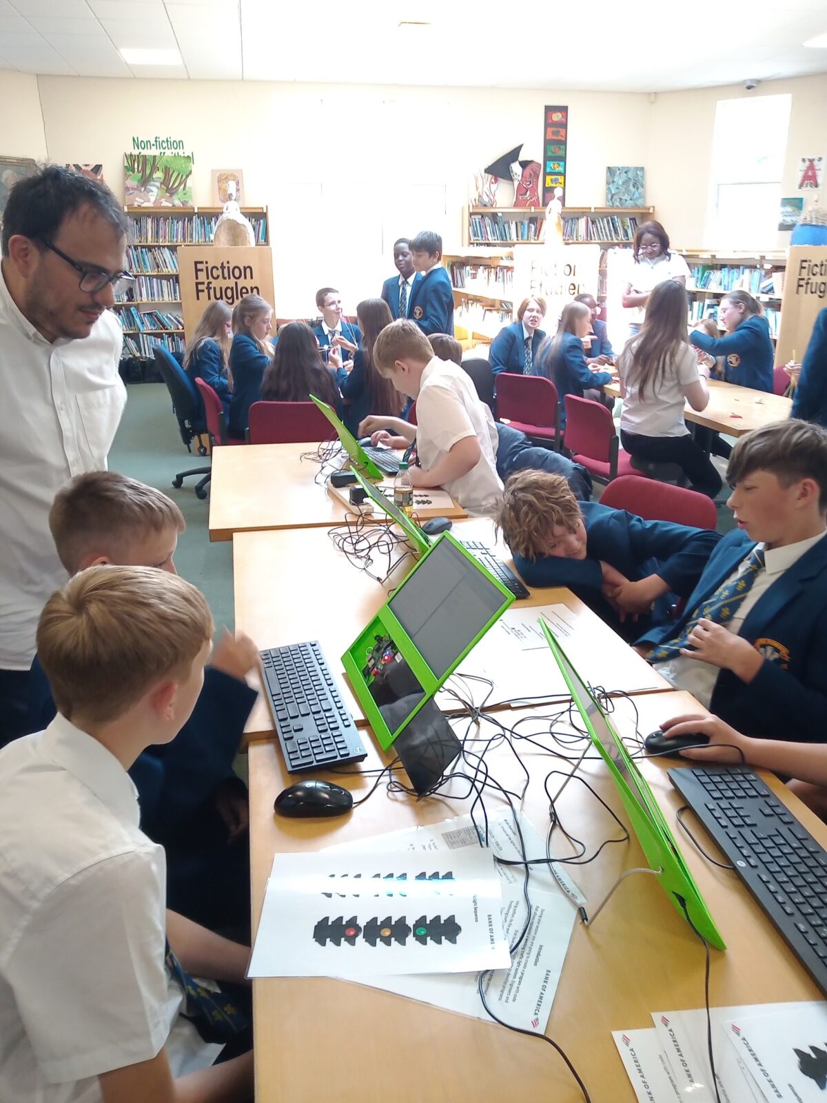 Recently, Bank of America attended Ysgol Rhiwabon to provide all of Year 7 with fun organised programming and engineering activities.