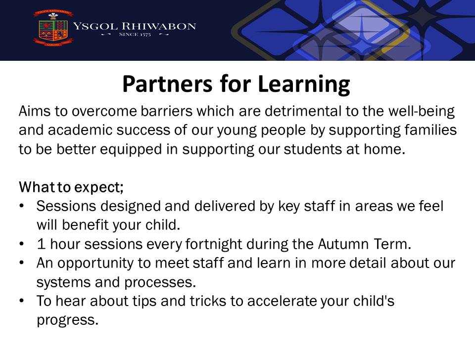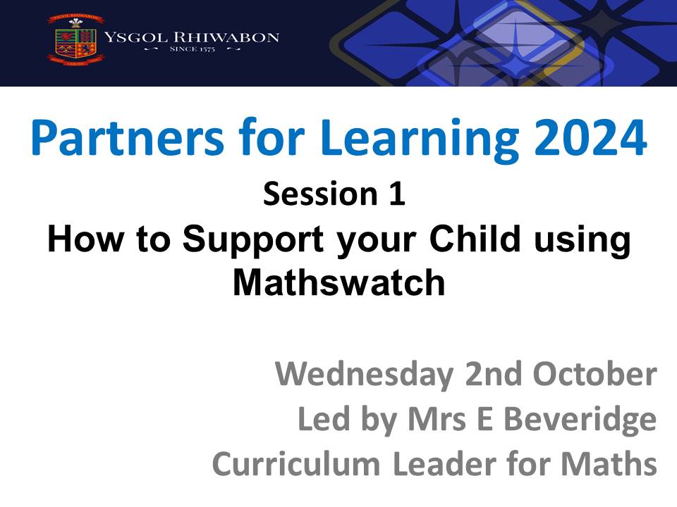 Wednesday evening saw the beginning of a new initiative at Ysgol Rhiwabon, ‘Partners for Learning’, which aims to overcome barriers which are detrimental to the well-being and academic success of our young people by supporting families to be better equipped in supporting our students at home. The first session for parents was focused on how to access and use Maths Watch, our online platform for Maths homework, exam preparation and extended Maths work at home, delivered by Mrs Beveridge, Curriculum Leader for Maths.