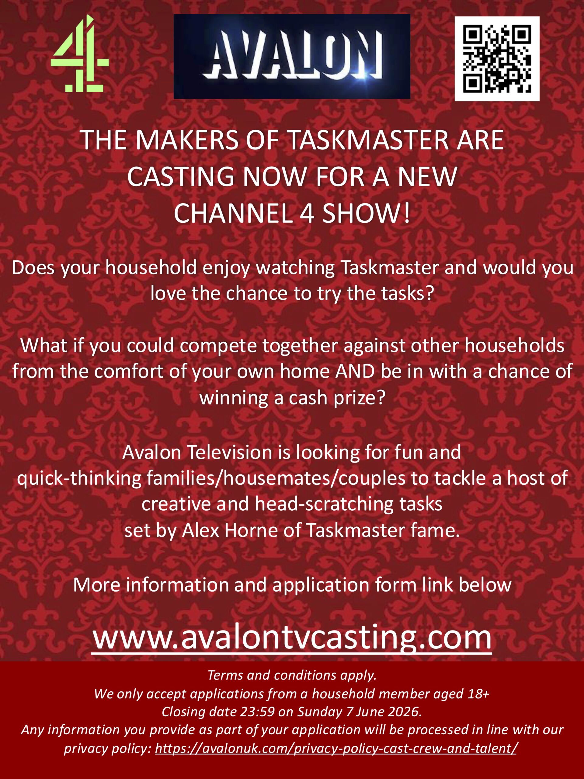 More information, T&Cs and the application form can be found at www.avalontvcasting.com